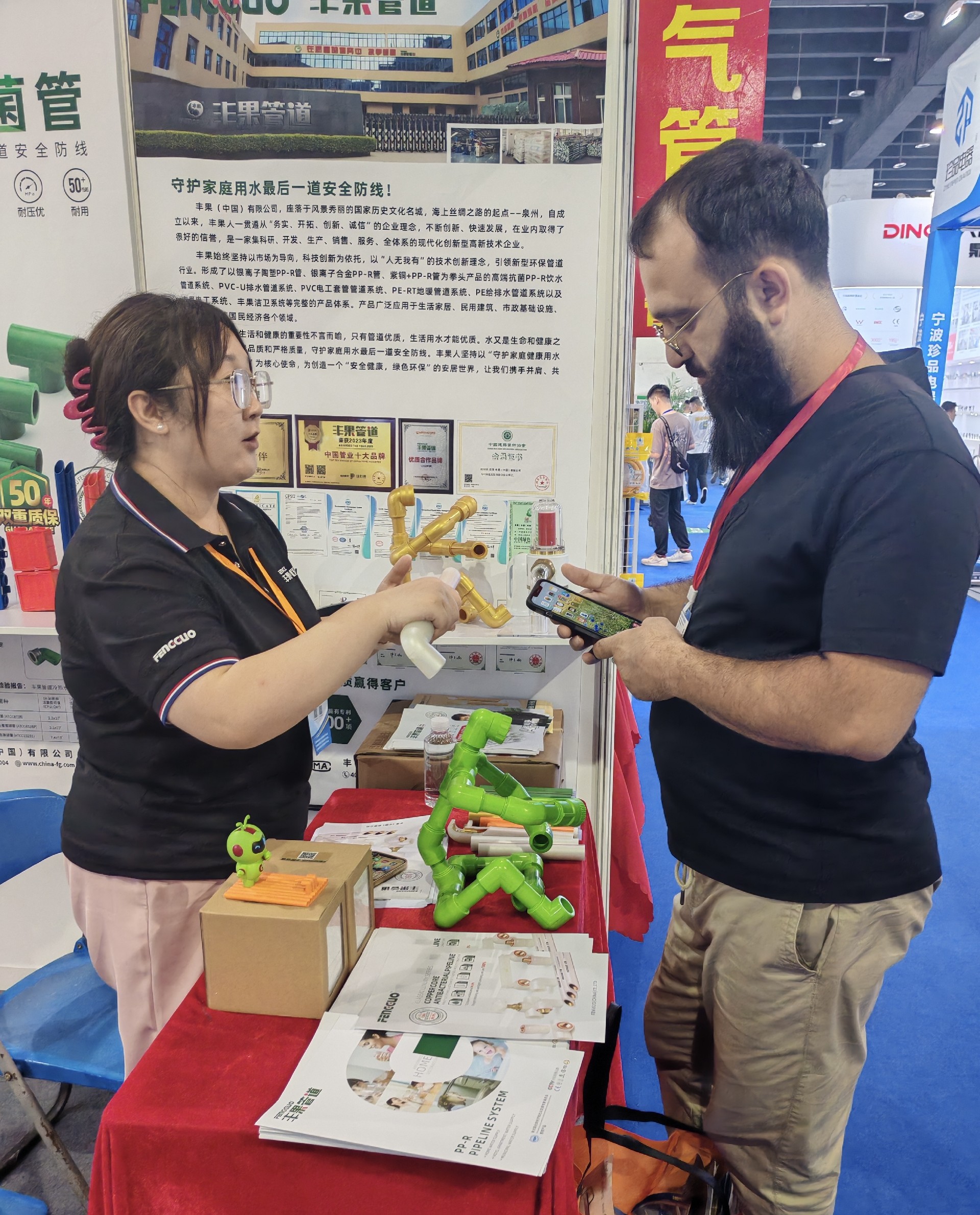 現場也接待了來自全球各地的外商客戶,主辦方也設置了跨國采購對接會,918博天堂的外貿業務員熱情的接待了外商客戶 ,對產品和公司進行了詳細的講解,期待918博天堂管道未來走向全球 ,帶來更優質的生活享受 !