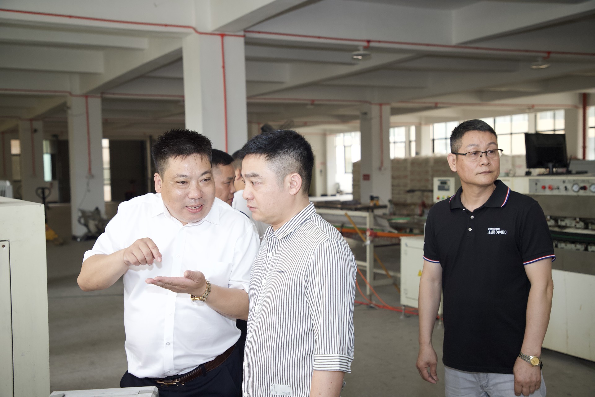 在集團楊董事長的陪同下 ,名匠總裁等一行人在一線車間進行細致的參觀考察 。楊董事長詳細介紹了公司的發展歷程 、生產工藝以及產品優勢,通過溝通 ,李總裁也對我司的生產規模,技術實力和產品質量給予了高度的評價 。